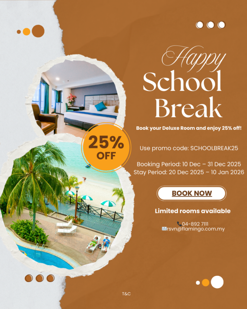 Join as at Flamingo Hotel by the Beach, Penang, and truly experience “at home by the beach”.